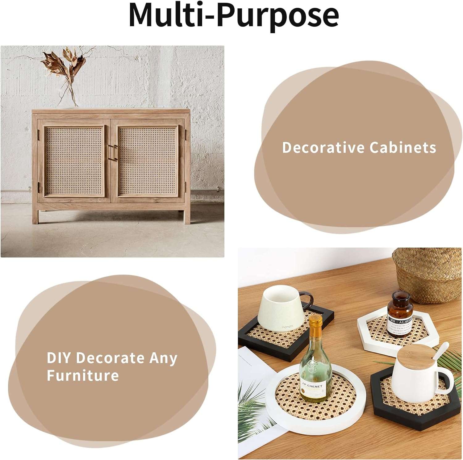High-quality : The rattan webbing is lightweight and durable that is it is easy to bend and form and is not afraid of squeezes and pressing, it is soft and flexible, great to decorate furniture.Furniture decorated with rattan can also be beautiful.
