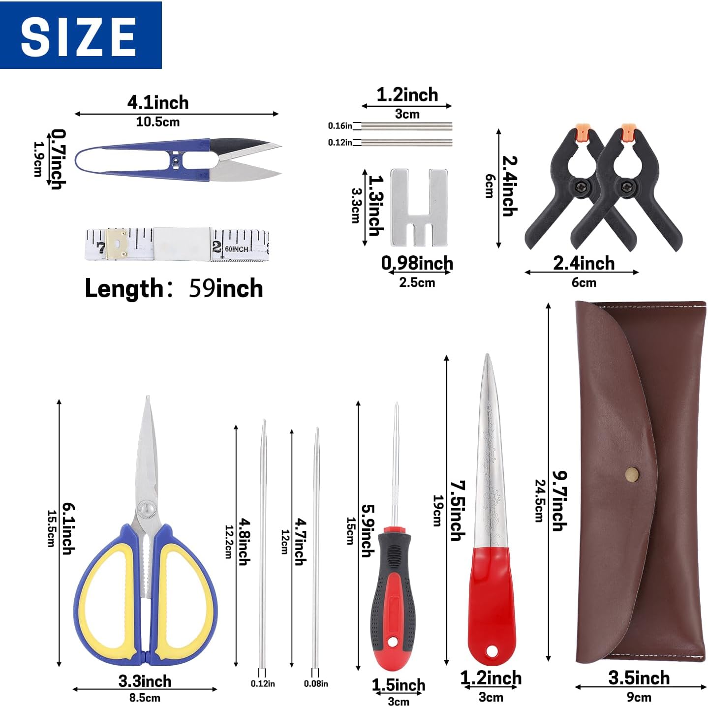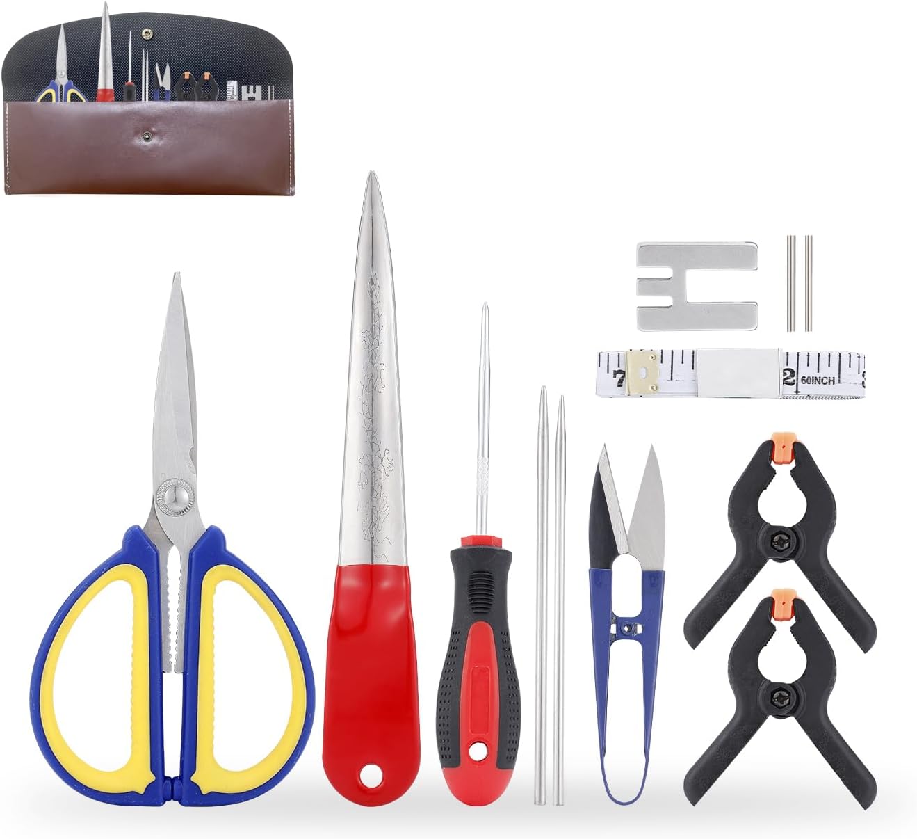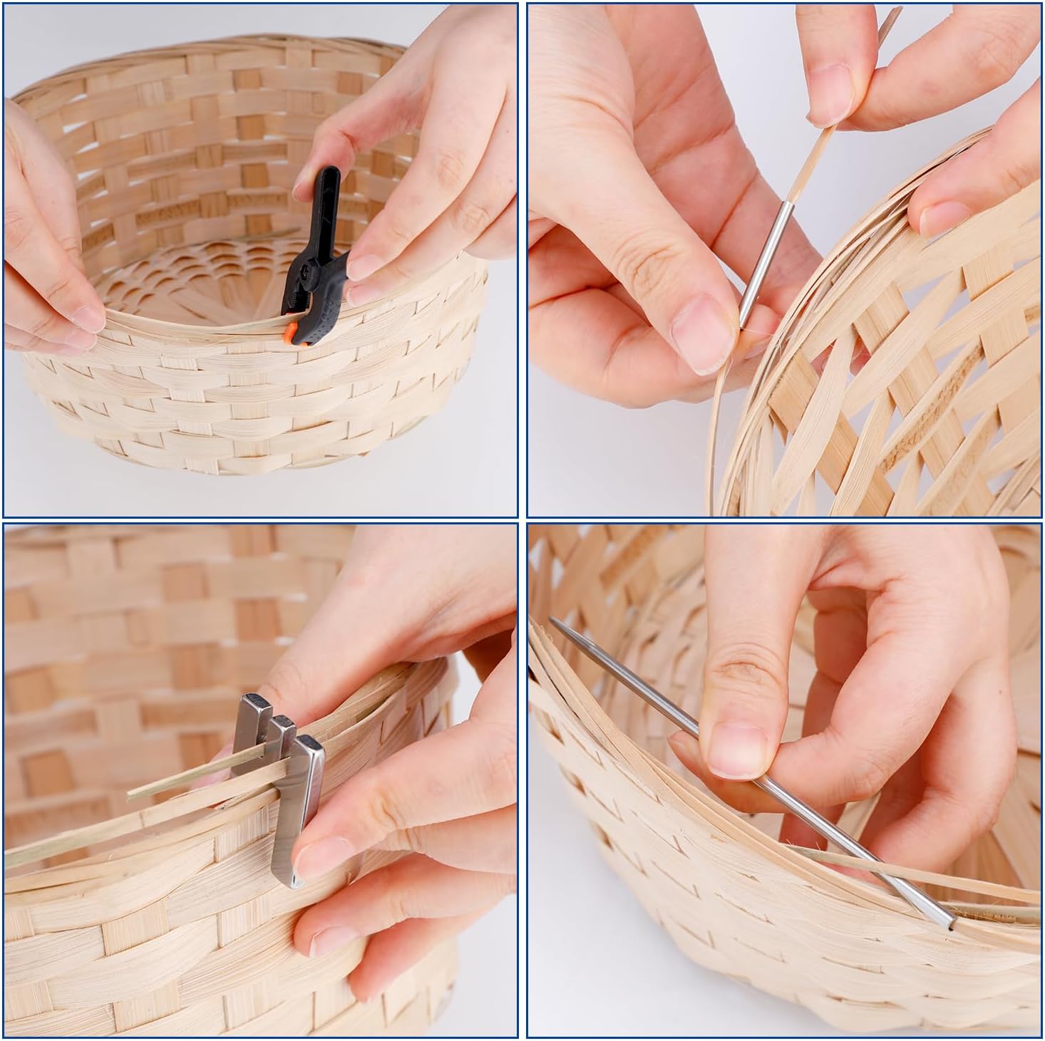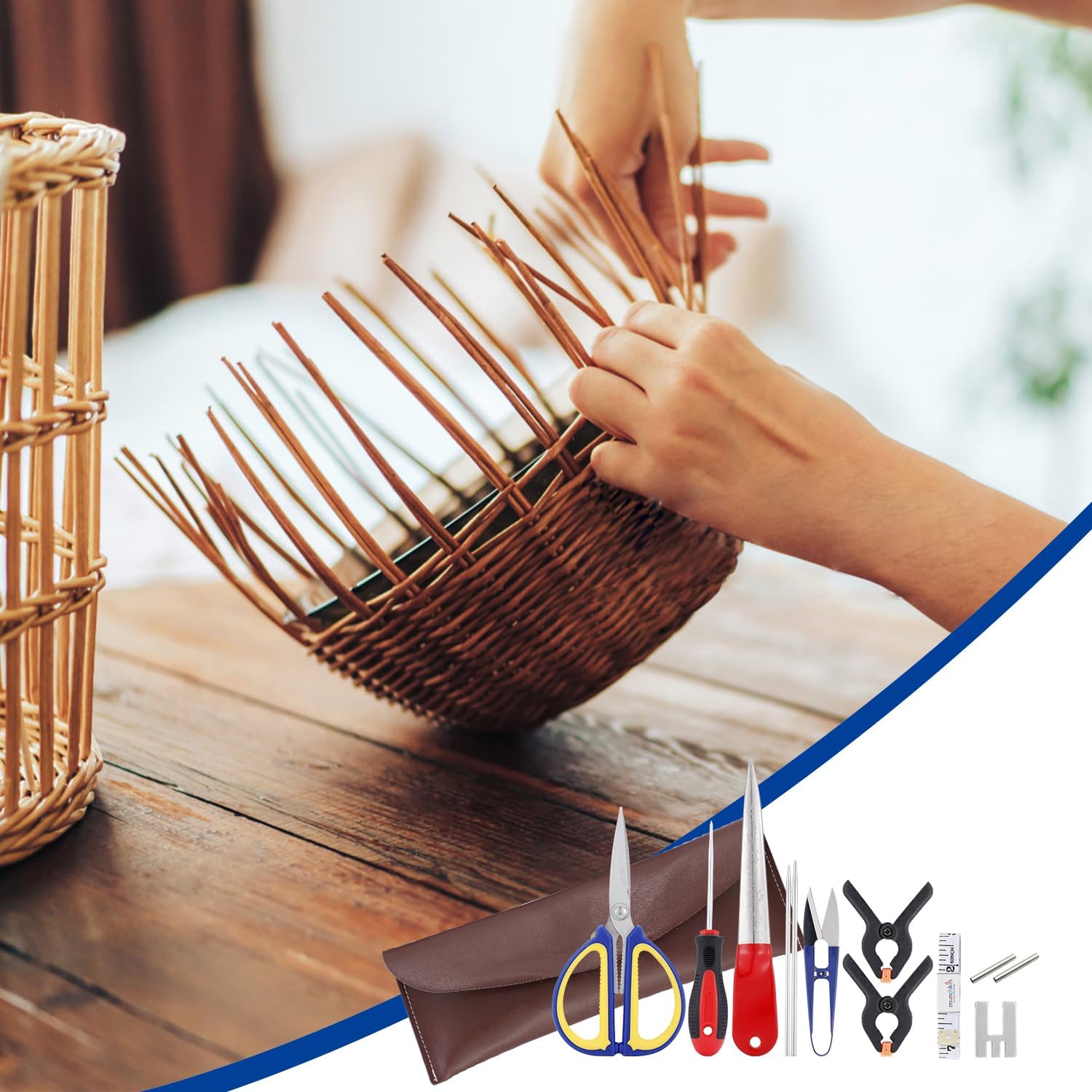 Basket Tool Kit: A rattan closing frame, wicker rattan pick, awl, measuring tape, scissors, hollow tubes, hollow needles, A-clamps, thread snips, and a leather case are all included in the basket weaving kit. These tools are light and portable, and they can be used for a variety of weaving tasks.