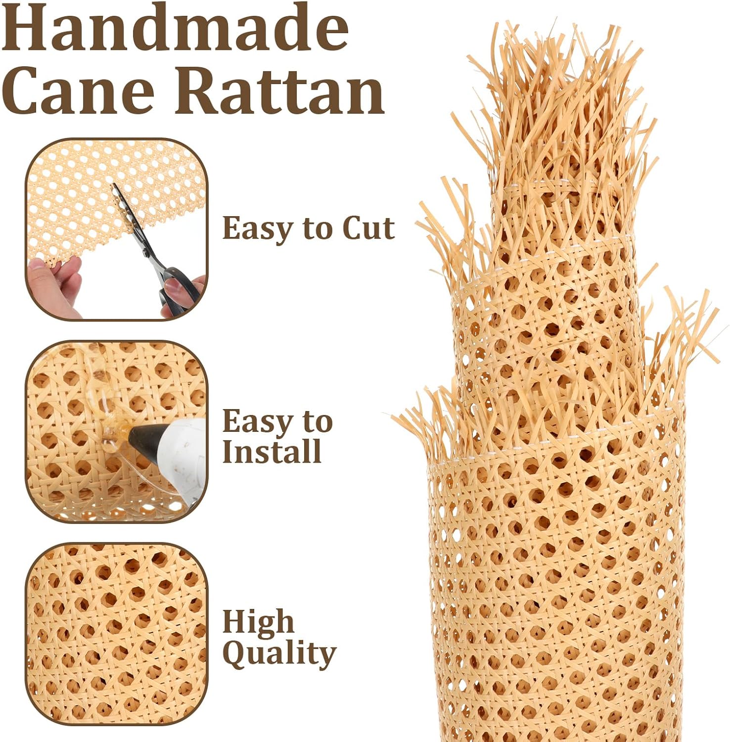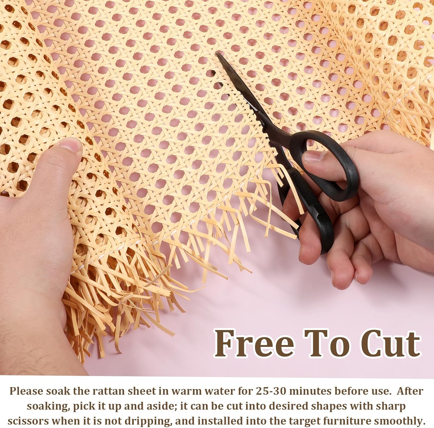 Easy to Cut and Shape: The IANFAN cane webbing is easy to cut and shape, making it easy to customize for your needs. Soak the furniture in warm water for 25 to 30 minutes before using it. After soaking, pick it up and set it aside. When it is no longer dripping, you can cut it.