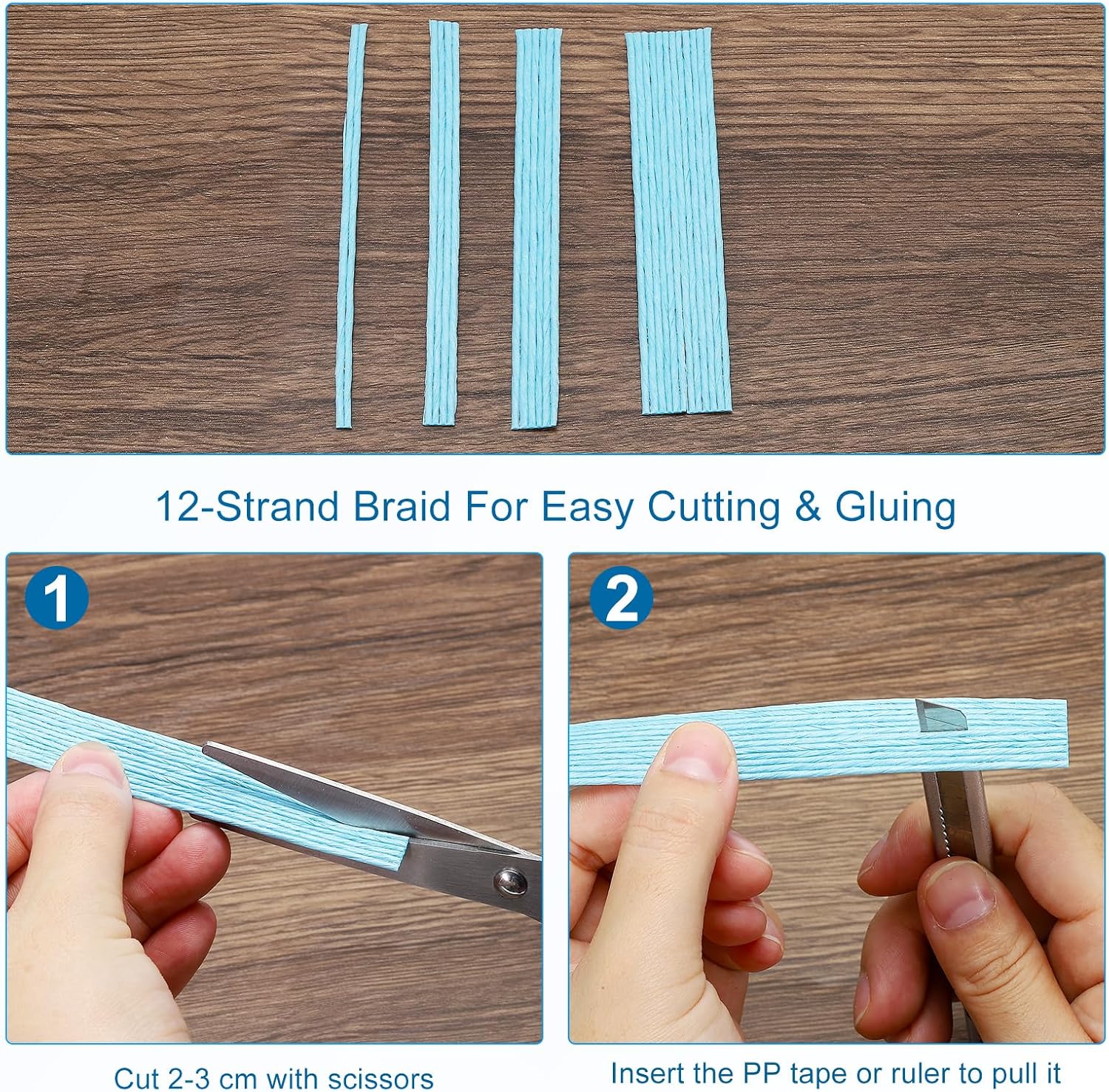 Made of paper material, it is strong, durable and softer. The woven finished product is not easy to deform or fade and can be easily cut and glued. Braided with 12 strands, it can meet most needs.