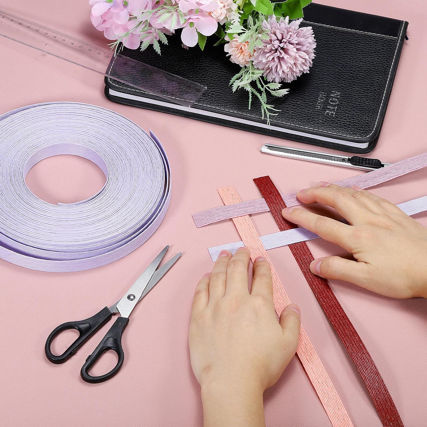 - Instruction: Divide the twelve strands of paper rattan. At the location where you need the number of strands, cut 2-3 cm. Pull the PP tape or ruler to split the paper rattan by inserting it vertically.