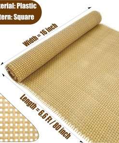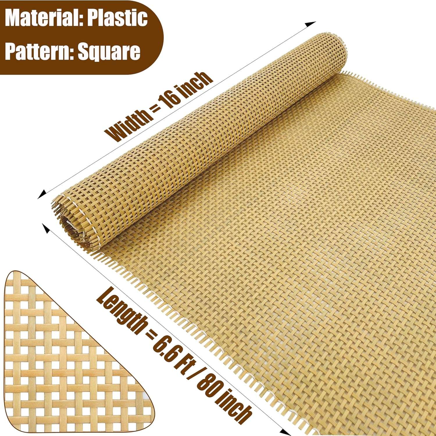 Plastic Rattan Square Webbing Roll, 16 in x 6.6 Ft, Faux Cane Webbing for DIY Home Decor Projects, Pre-Woven Open Mesh for Furniture, Bed, Cabinet, Wardrobe, Room Divider, Light Shade