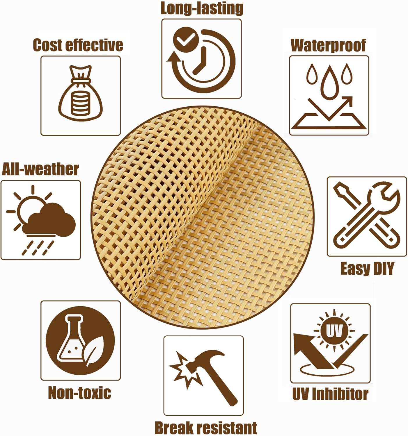 DIY crafts: If you want to make your favorite crafts yourself, plastic rattan cane webbing is a good option that can help you save a lot of money. Package includes: 1 rolls of plastic rattan cane webbing in natural color.