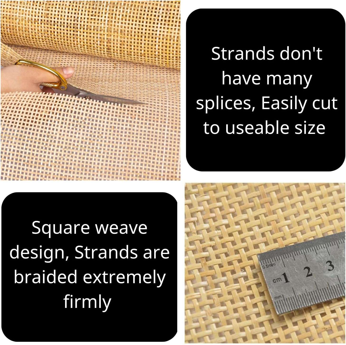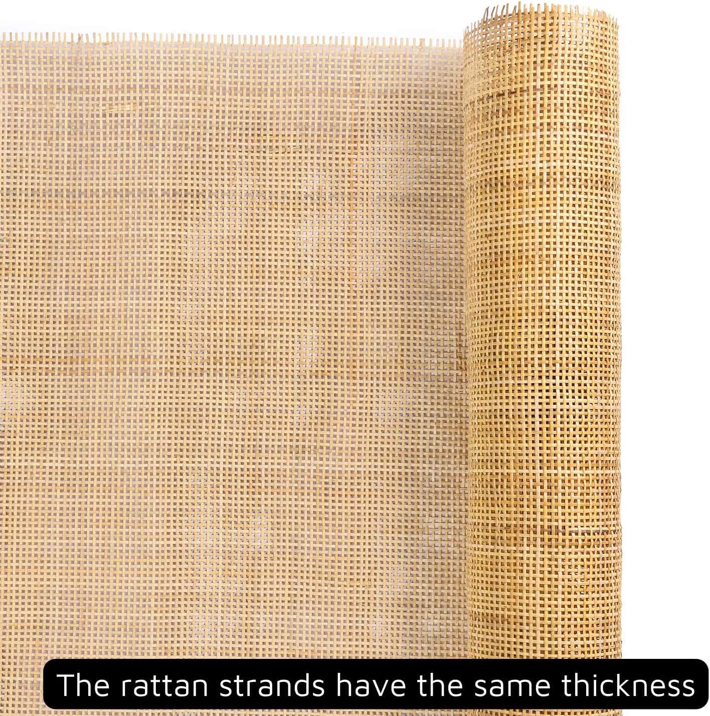 24” Width Natural Rattan Cane Square Webbing | 24” W x 12 ft L | Rattan Radio Weave, Cane Webbing Roll for Caning Projects, Chair, Cabinets, Caning Supplies Wicker, Woven Open Mesh Cane (12 FEET)