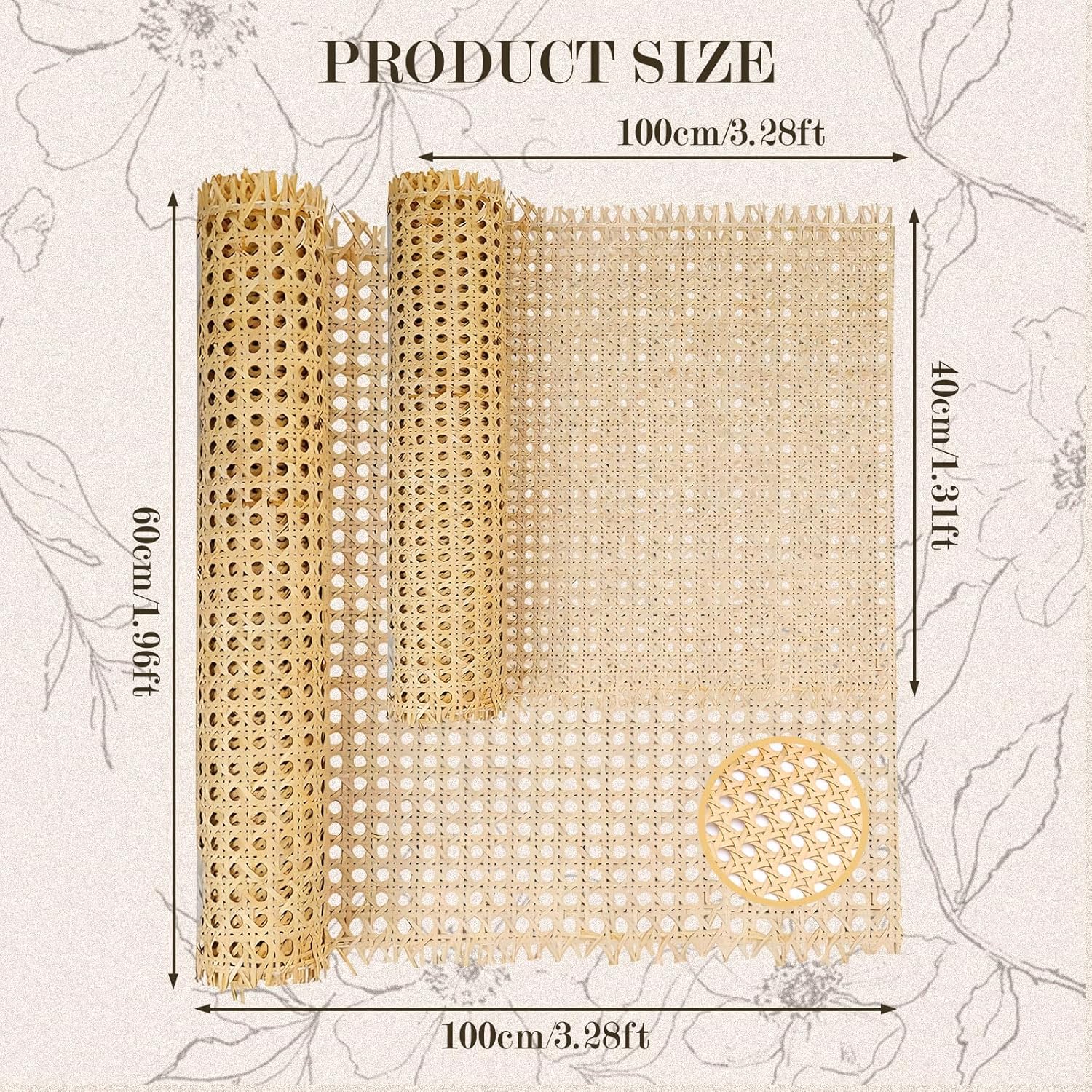 Two sizes to meet your needs: The package contains two rolls of rattan webbing, with a total length of 6.6 feet. Each roll is 3.3 feet/100 cm long, 16 inches/40 cm wide, 24 inches/60 cm wide, and 0.05 inches/1.2 mm thick. enough to meet your various DIY requirements.