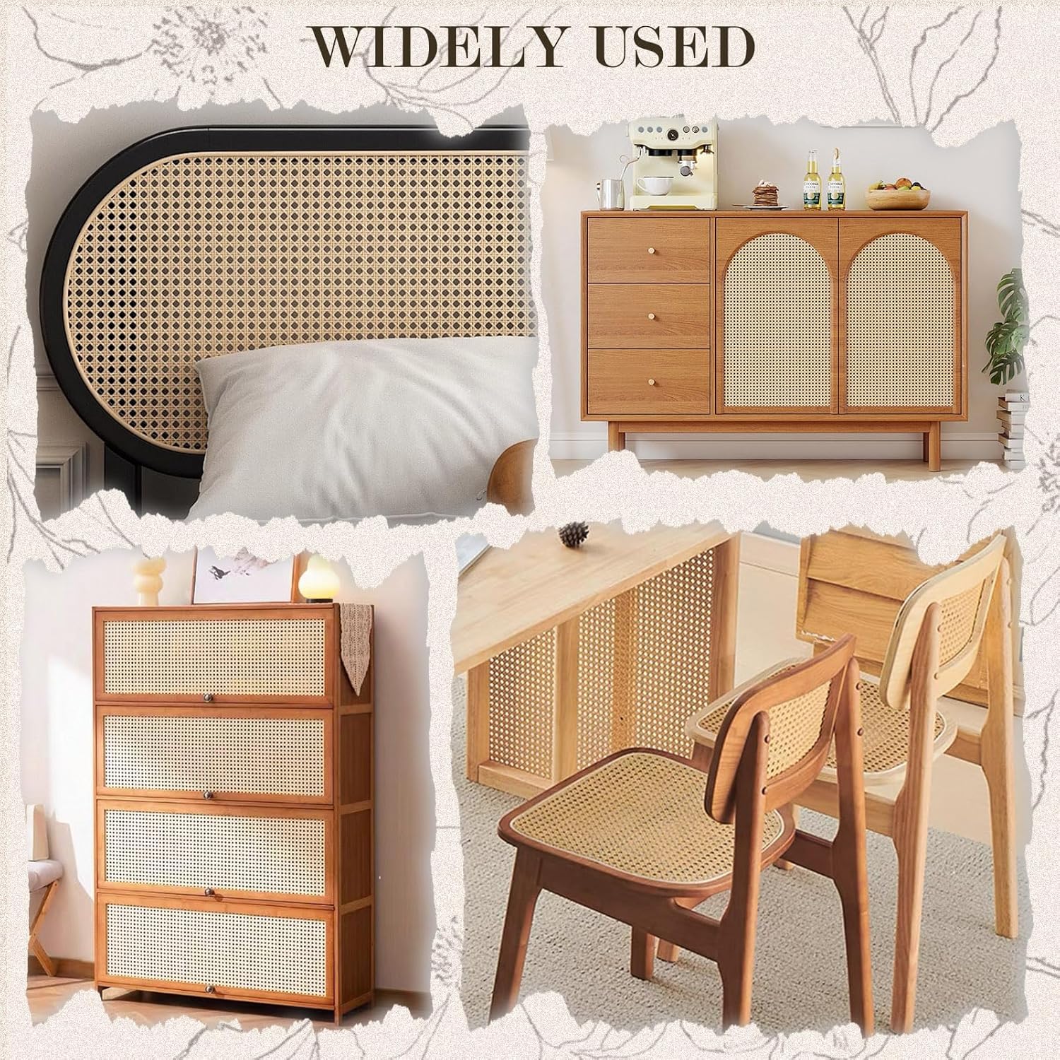DIY CREATION & UNLIMITED CREATIVITY: The soft rattan webbing rolls have strong adaptability and can be easily integrated into various furniture combinations. Whether it’s a retro sofa, a modern and simple coffee table, or an outdoor leisure hanging chair, the rattan roll can be perfectly matched to add a unique charm to your home environment. You can diy anything as you like.