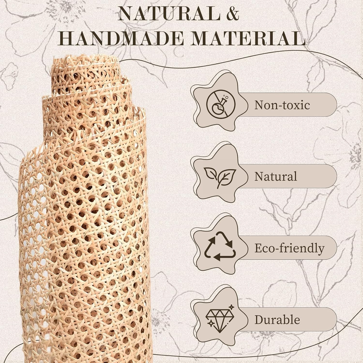 EXCEPTIONAL QUALITY: Rattan webbing is made from natural rattan, which is environmentally friendly and non-toxic. The rattan retains its original color and is undyed, so it won’t fade over time. It’s lightweight and durable, resisting breakage or deformation, making it suitable for both indoor and outdoor use. Furthermore, the rattan fabric offers excellent breathability, ensuring a comfortable, even prolonged use without feeling stuffy.