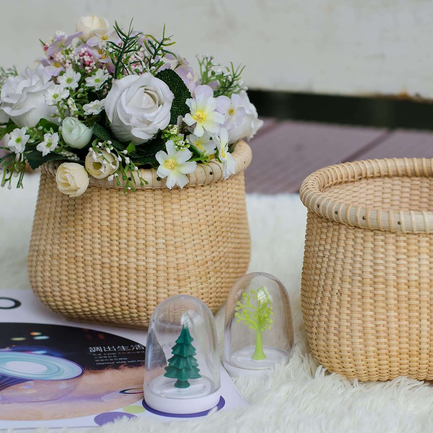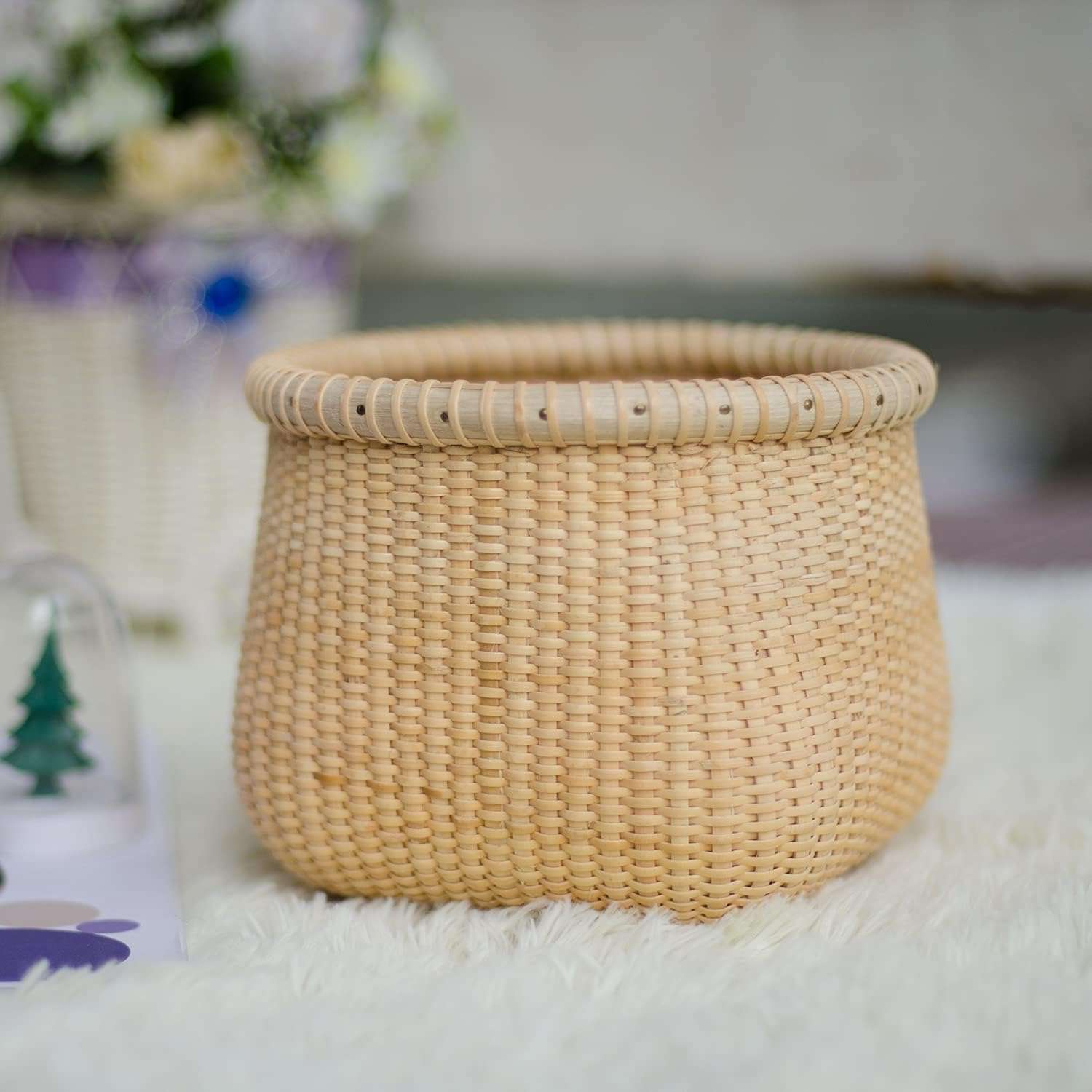 Teng Jin Nantucket Handicraft Basket Desktop storage and organization Cane-on-cane weave Square bottom round mouth storage Nautical Folk Art of the 19th Century